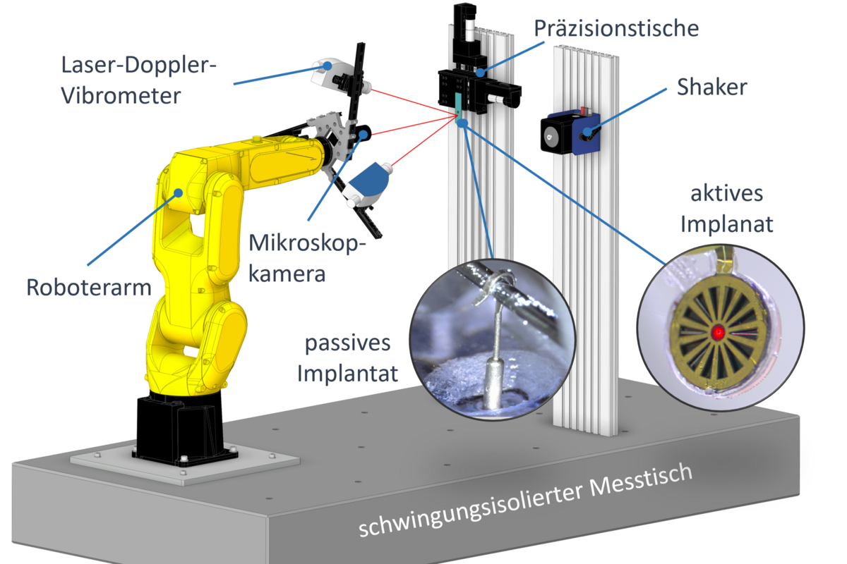 Statische Kraft- und Steifigkeitsmessungen ermöglichen es Kräfte bei der Applikation von Prothesen zu bestimmen und daraus das Risiko einer Schädigung bei der Prothesenimplantation abzuleiten. Ziel ist es durch ein innovatives Prothesendesign die Patientensicherheit und Hörleistung eines Implantats zu verbessern.
